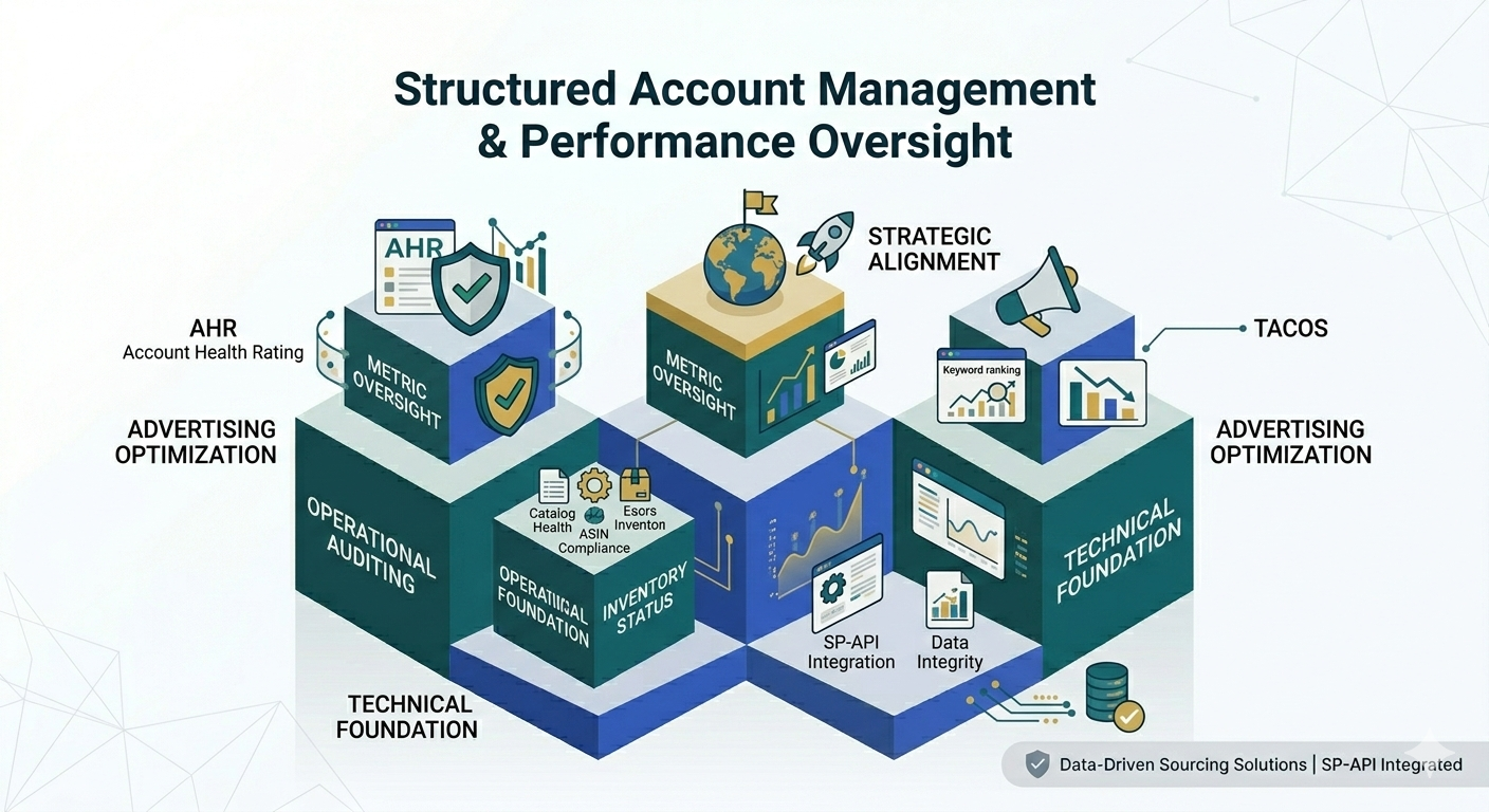 We provide comprehensive account management support designed to help brands operate efficiently within the Amazon marketplace. Our team monitors account performance, listing health, and operational metrics to support long-term stability and structured growth.