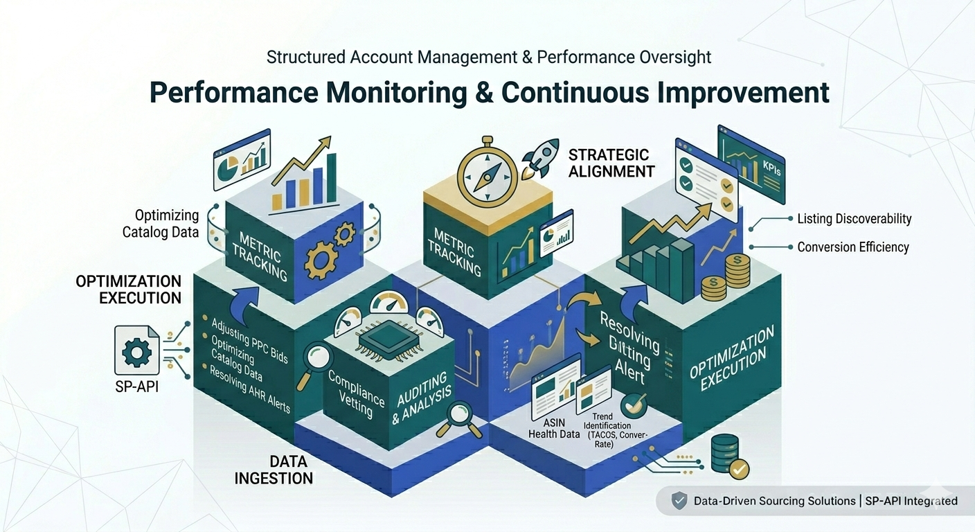 Through consistent performance tracking and data analysis, we help brands identify improvement opportunities while maintaining alignment with applicable marketplace policies. Our approach emphasizes organization, transparency, and operational discipline.
